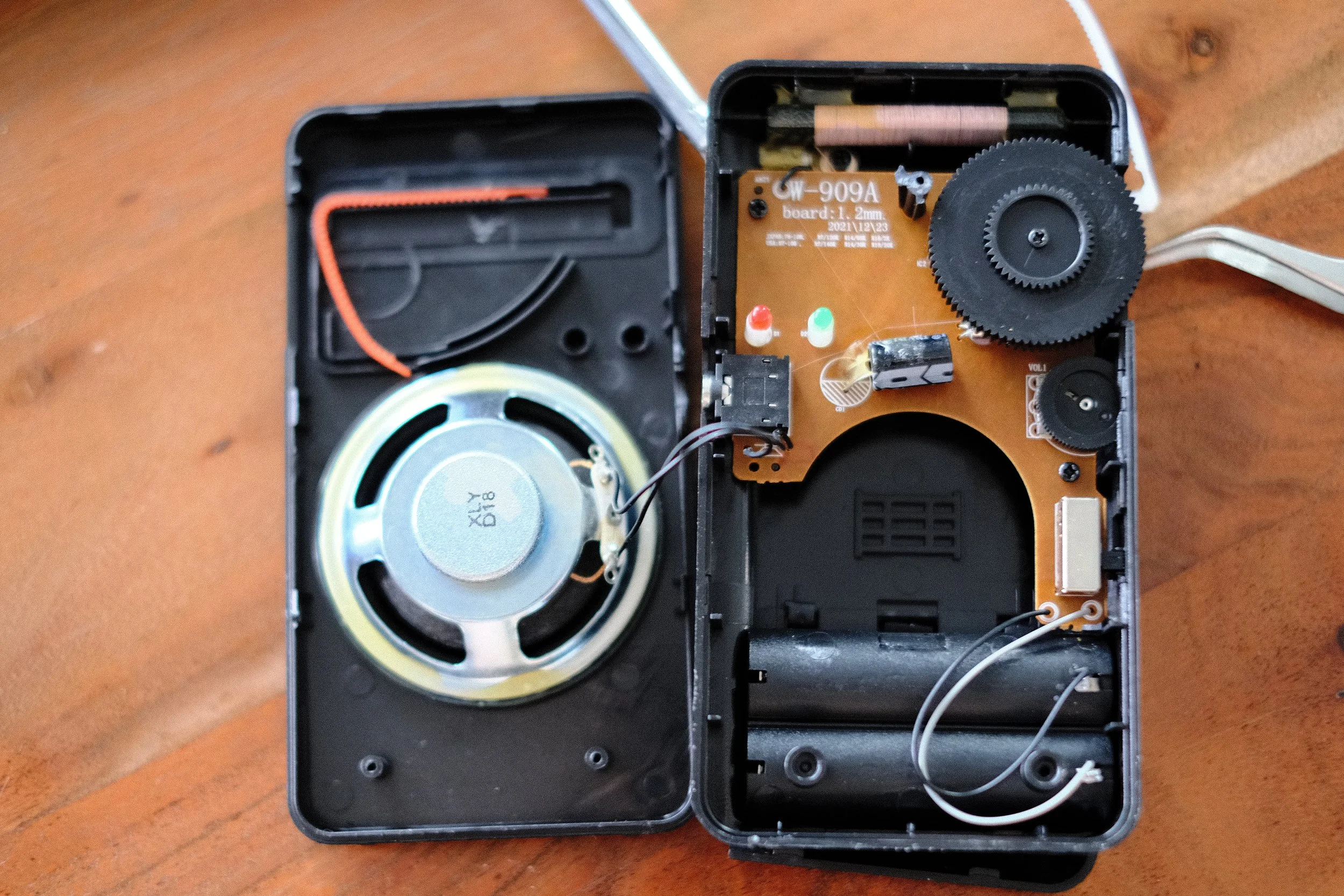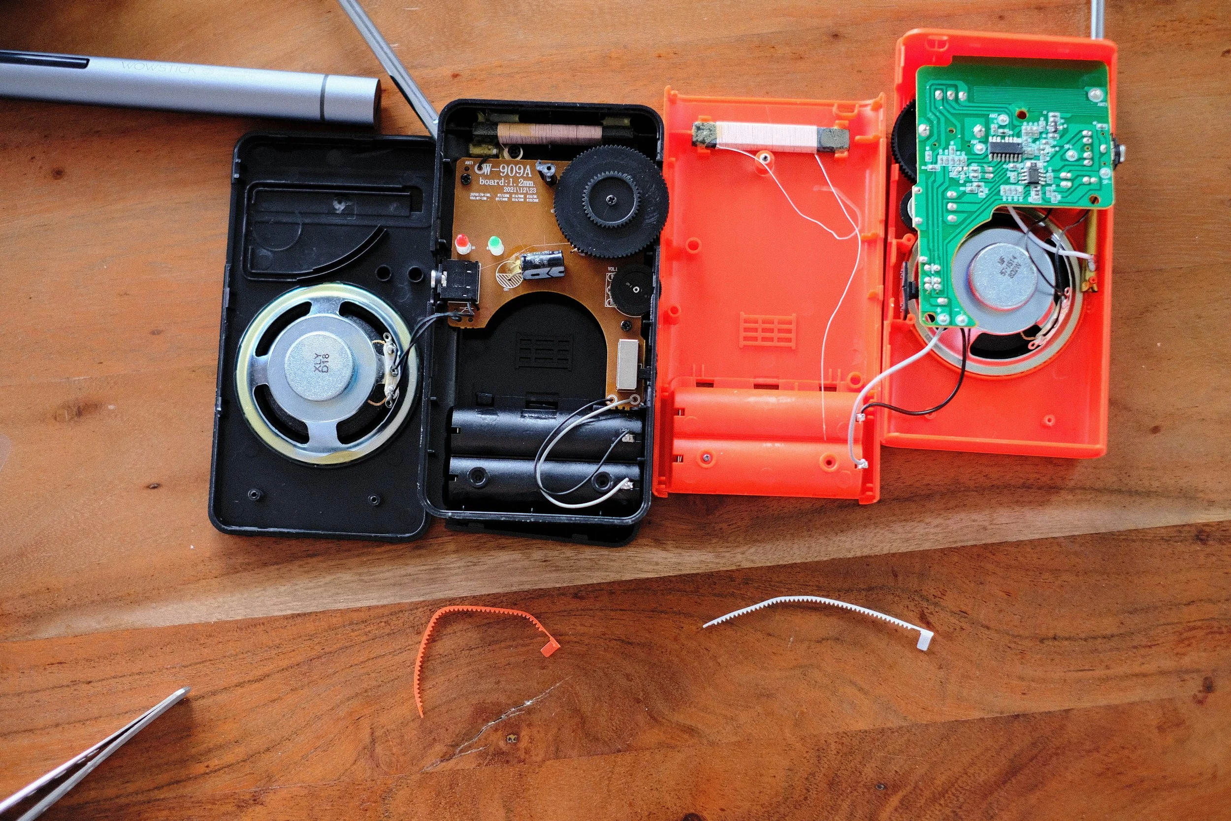 I dont really know why such a simple part gave me such a pause. I had always assumed there was some sort of belt or string loop pulling back and fourth a little flag, or something along those lines. This solution just just seems so clean. In an effort to see if this was now standard fare in cheap pocket radios, I did what any normal human would do and ordered 4 more radios to crack them open and take a look for myself.